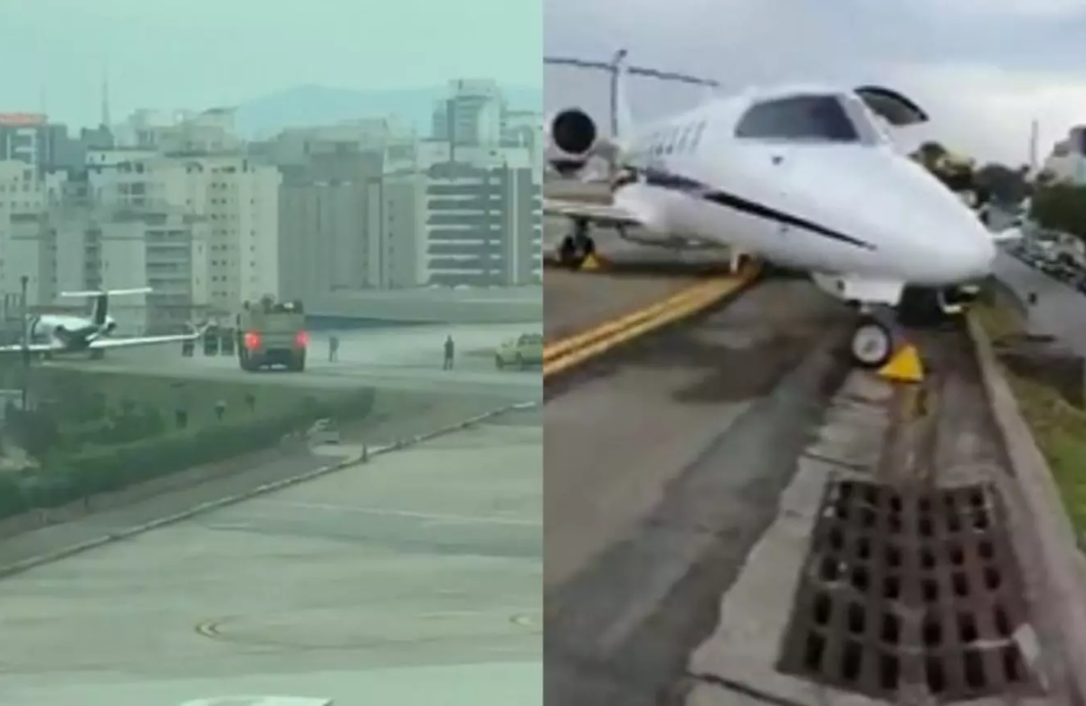 Avião de pequeno porte ficou no limite da pista, na manhã deste domingo (9) Um avião de pequeno porte