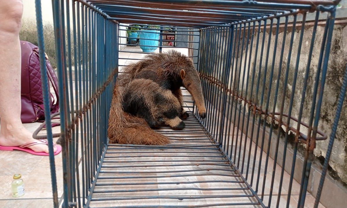 Depois de capturaram ontem (23) às 20h00, um animal silvestre adulto da espécie Myrmecophaga tridactyla (Tamanduá-bandeira), no centro da cidade e