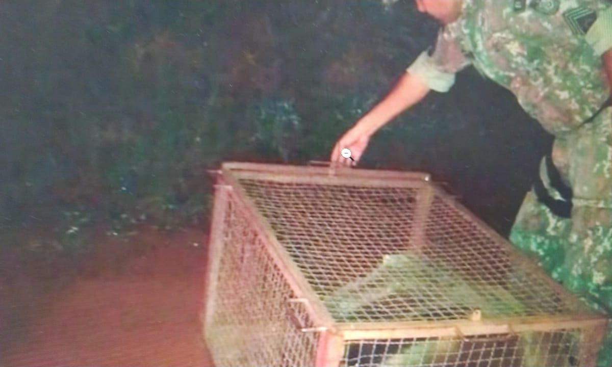 Um animal silvestre adulto da espécie Myrmecophaga tridactyla (Tamanduá-bandeira) foi capturado ontem (22) à noite, por Policiais Militares Ambientais de Batayporã. Pessoas que