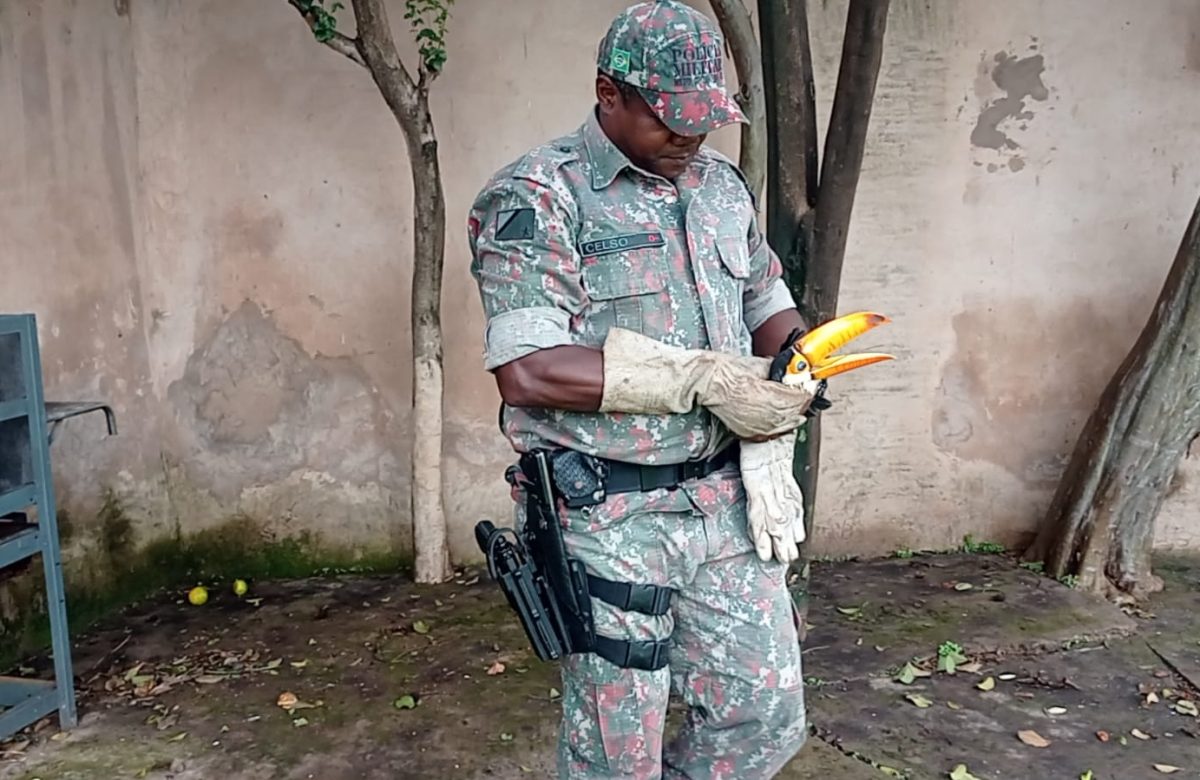 Polícia Militar Ambiental de Aquidauana captura tamanduá-bandeira em escritório de contabilidade na cidade