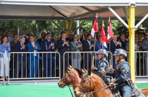 Autoridades acompanharam o desfile que contou com 4 mil integrantes de 18 organizações civis e militares. “A gente participa como todo nosso entusiasmo. O desfile de hoje foi mais uma vez extremamente positivo com tudo que a gente tem em relação a segurança pública, as forças armadas brasileiras”, declarou o governador Eduardo Riedel.