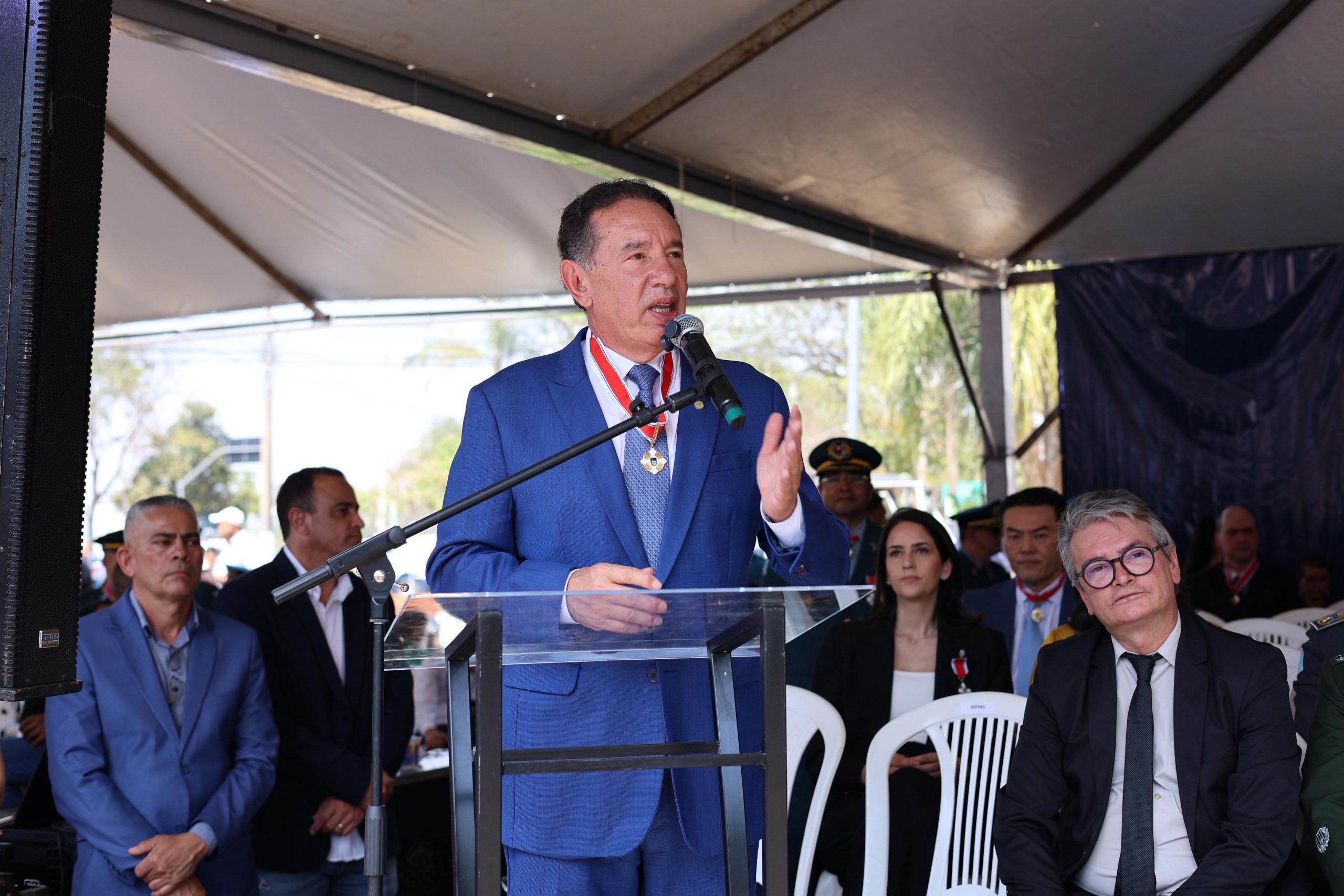 Em discurso, Gerson Claro destacou a importância da Polícia Militar para a sociedade sul-mato-grossense e ressaltou os valores que norteiam a corporação.