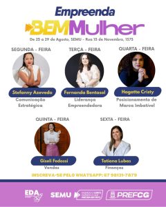 As inscrições são gratuitas e podem ser realizadas pelo WhatsApp (67) 98131-7879, presencialmente na sede da SEMU ou pelo Instagram @semucg.